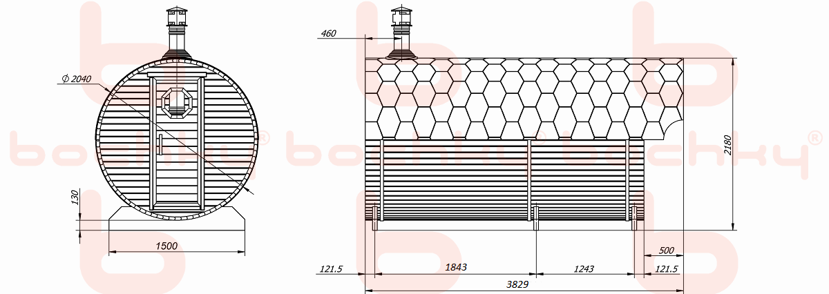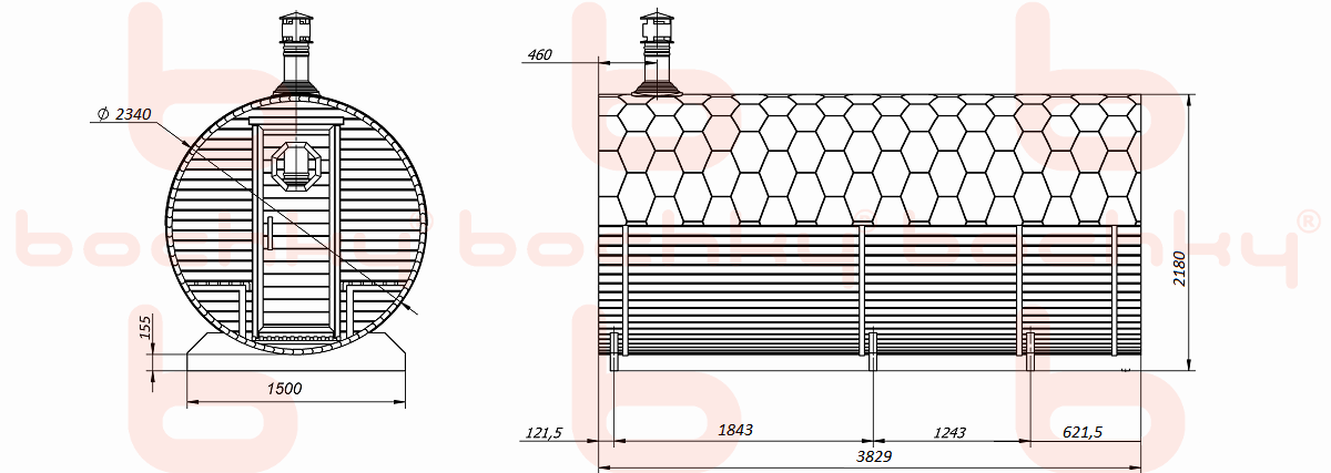 - Spruce or cedar profile (thickness 42mm, humidity 10%)