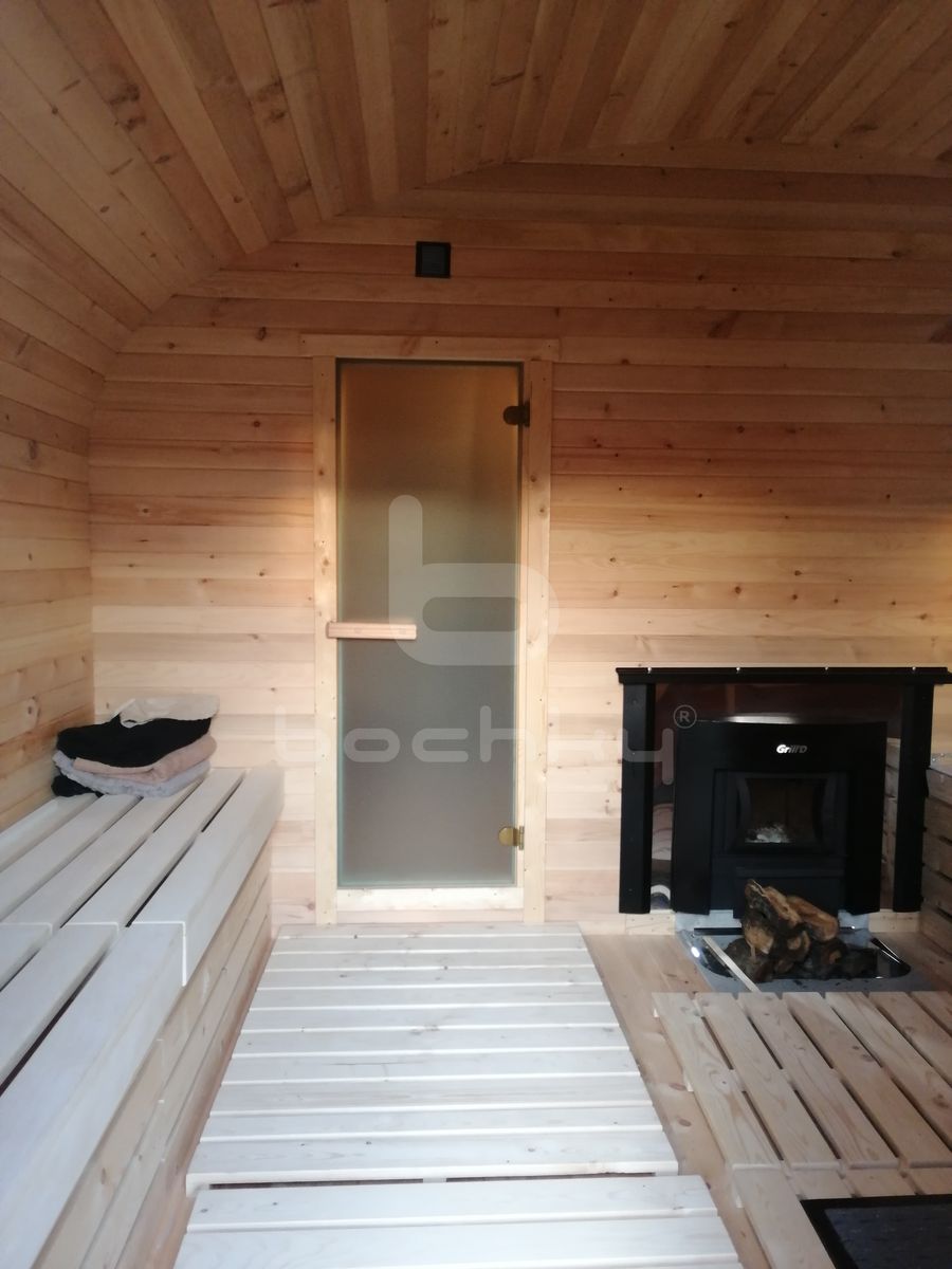 - Glass door to the sauna