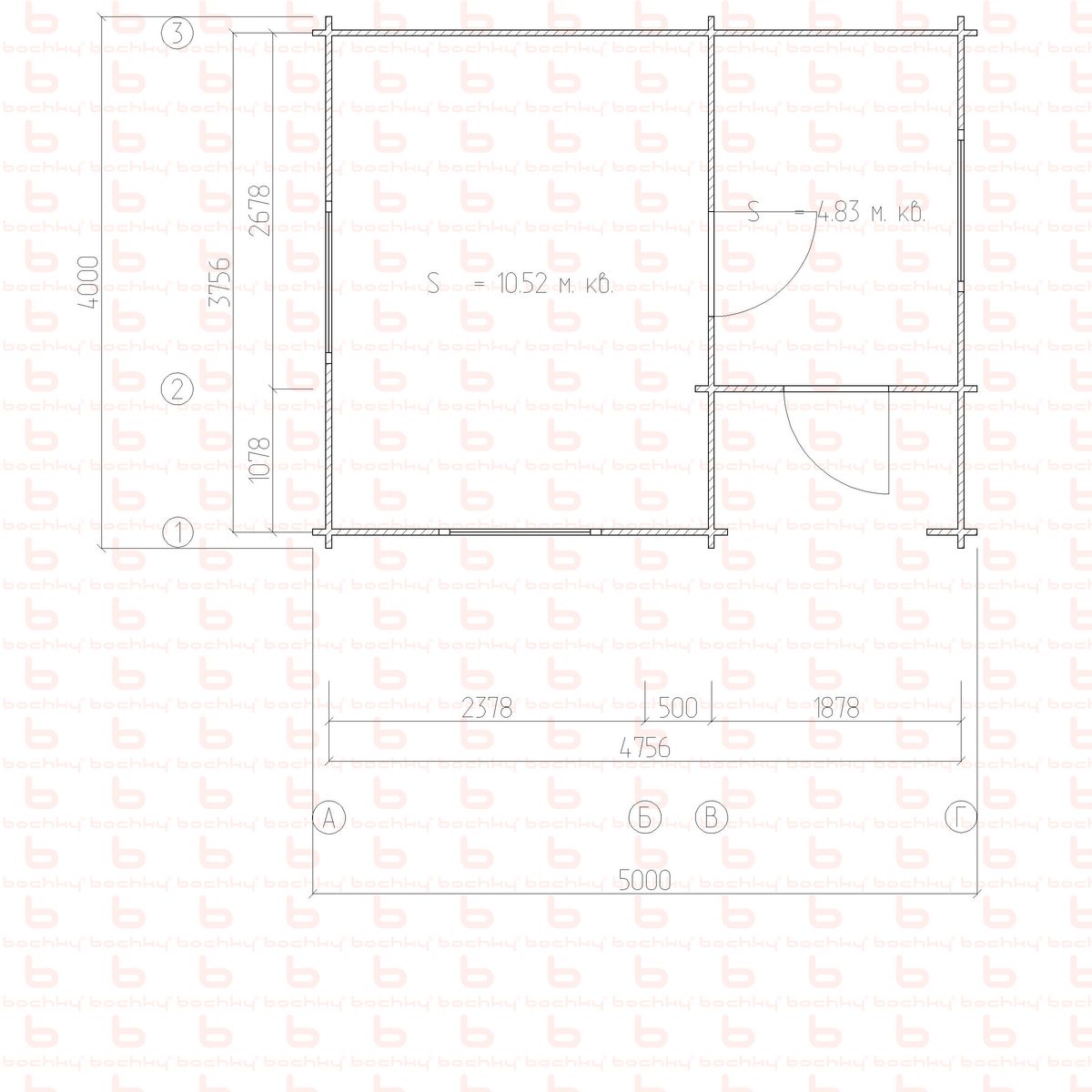 | Floors (base under the finishing floor) | Kiln-dried tongue-and-groove board 35 mm thick, humidity 10-12% |