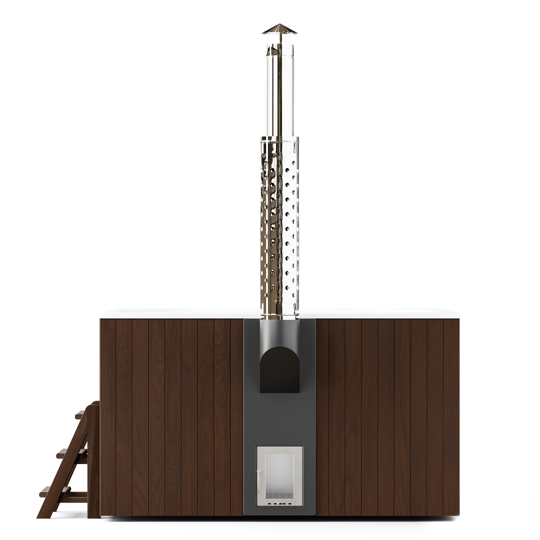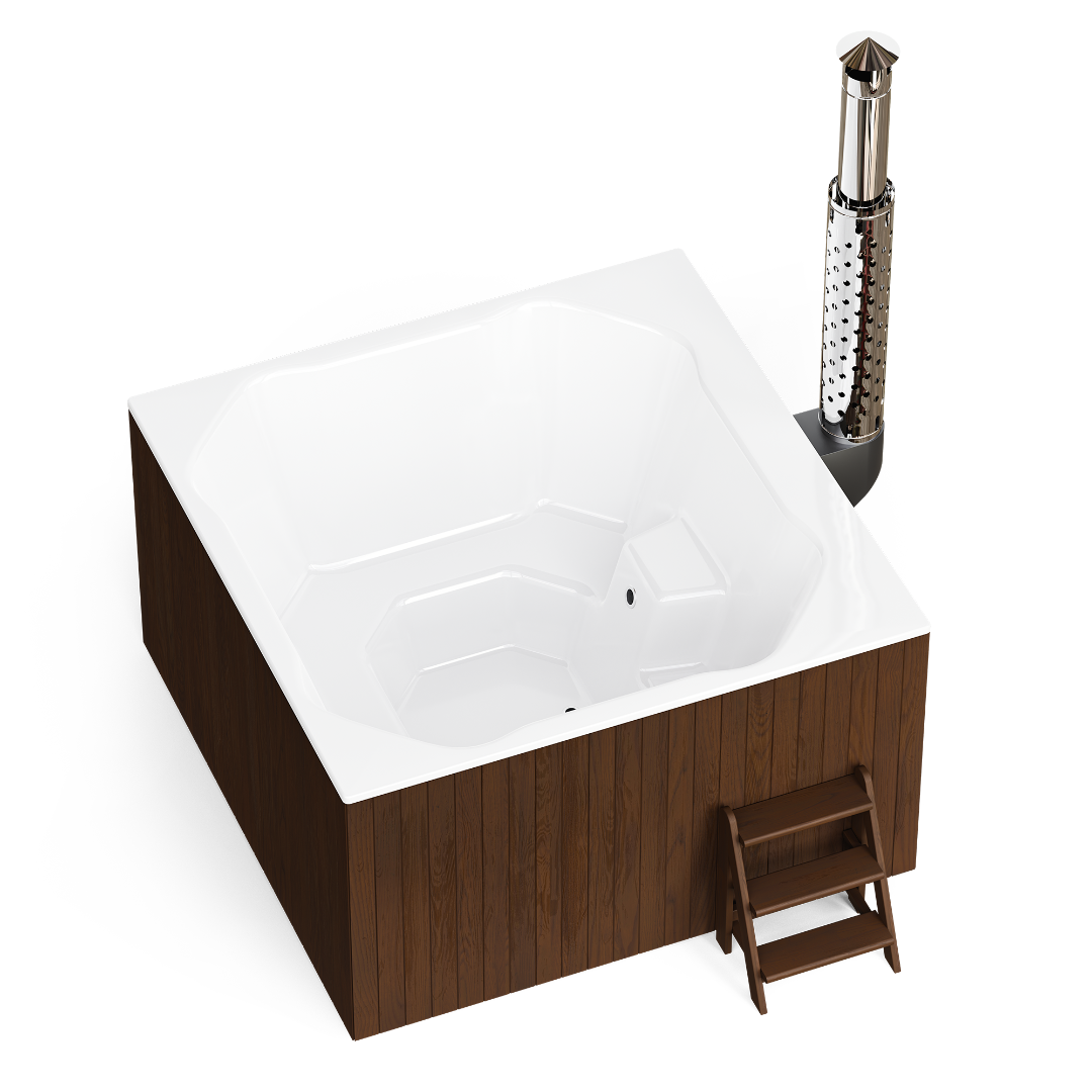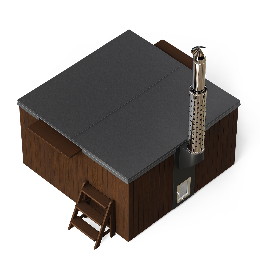 The tub can be used outdoors in any weather conditions. An integrated POLARSPA stove 35 kW manufactured according to our exclusive design heats up the water to a comfort temperature in 1.5–2 hours. The stove is absolutely safe – it has a protection shield on the funnel, heat-resistant glass, no sharp corners, and all the utilities are hidden inside.