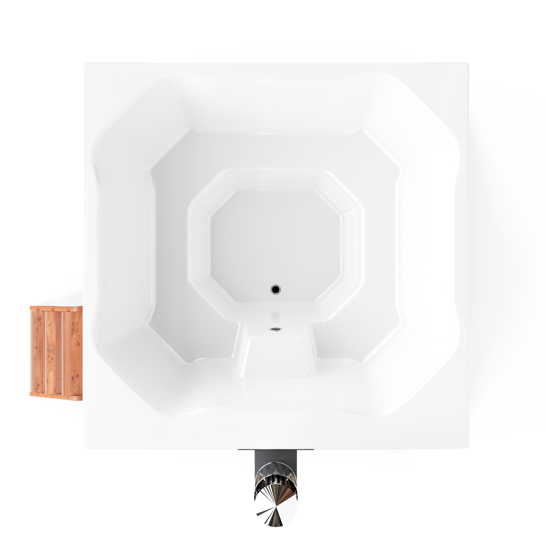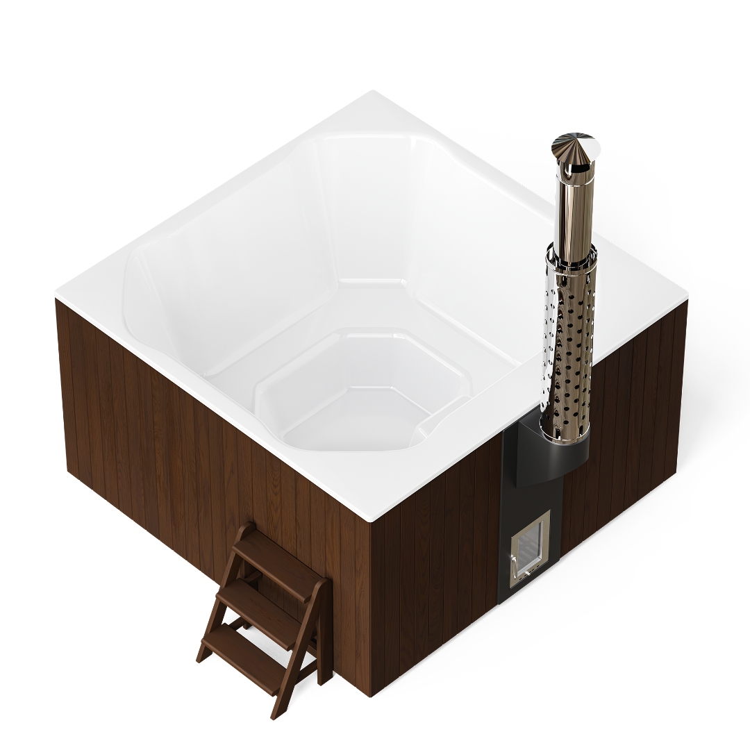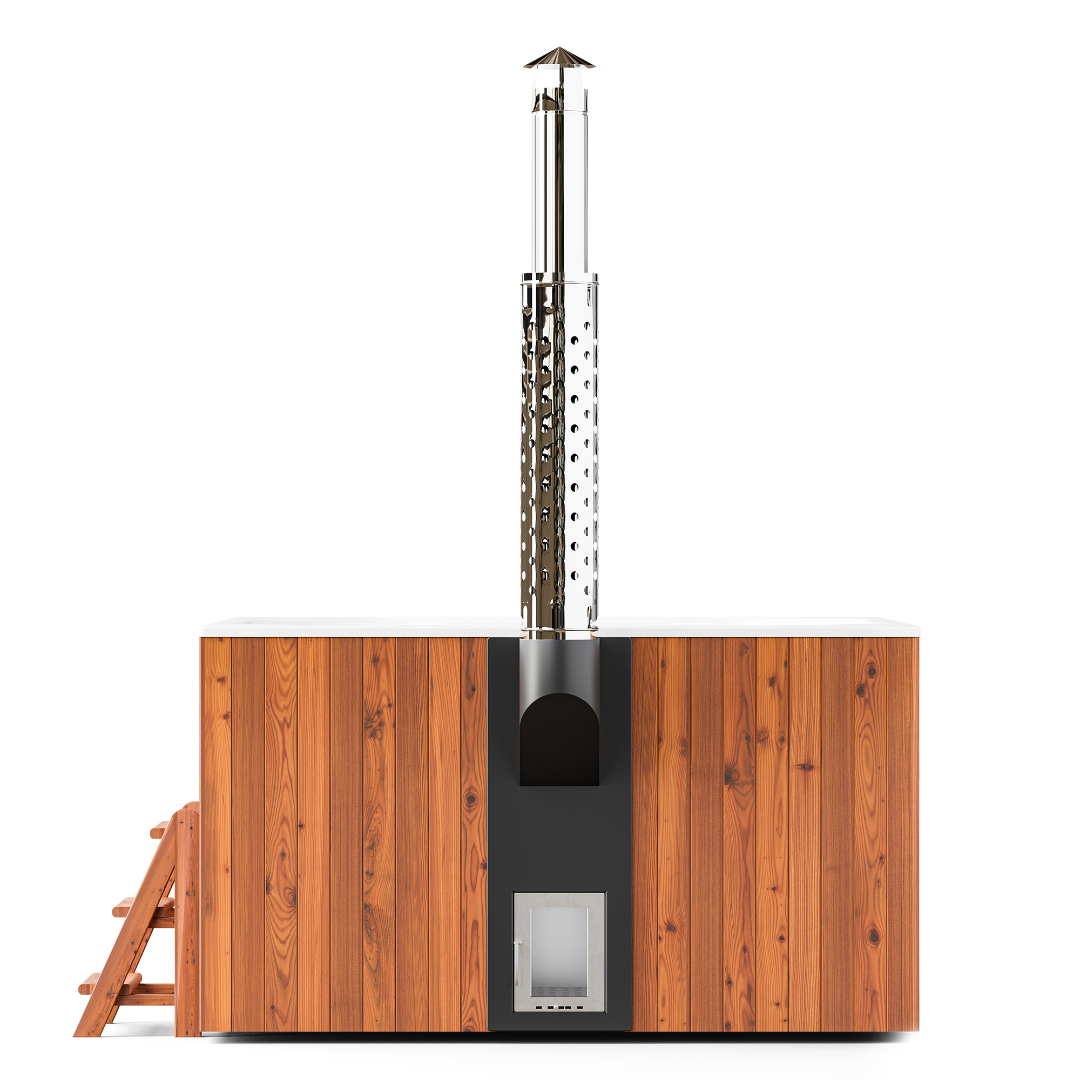 The tub can be used outdoors in any weather conditions. An integrated POLARSPA stove 35 kW manufactured according to our exclusive design heats up the water to a comfort temperature in 1.5–2 hours. The stove is absolutely safe – it has a protection shield on the funnel, heat-resistant glass, no sharp corners, and all the utilities are hidden inside.
