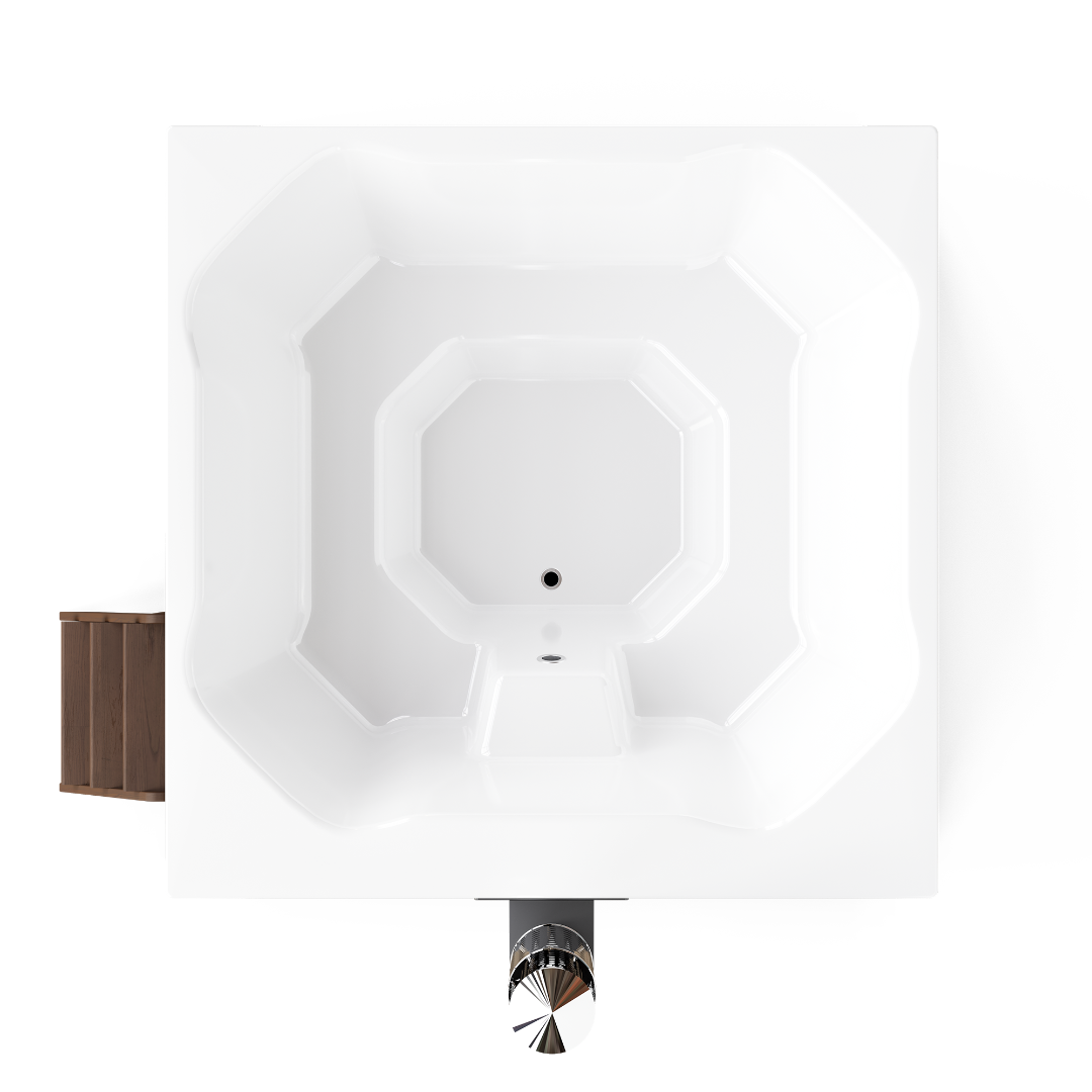 The design of this premium tub is well-honed, and its functionality is thought out to the last detail. The tub pot is made of innovative laminated composite using high-strength protective and decorative material of premium class – gelcoat manufactured by BUFA (Germany). Gelcoat is absolutely safe for humans and allows to get the glaze effect. Tub coating is smooth and pleasant to touch. It is dazzling white – the water in such pub is always crystal clear.