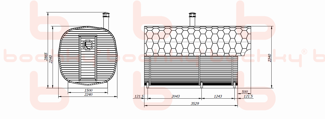 - Spruce or cedar profile (thickness 42mm, humidity 10%)