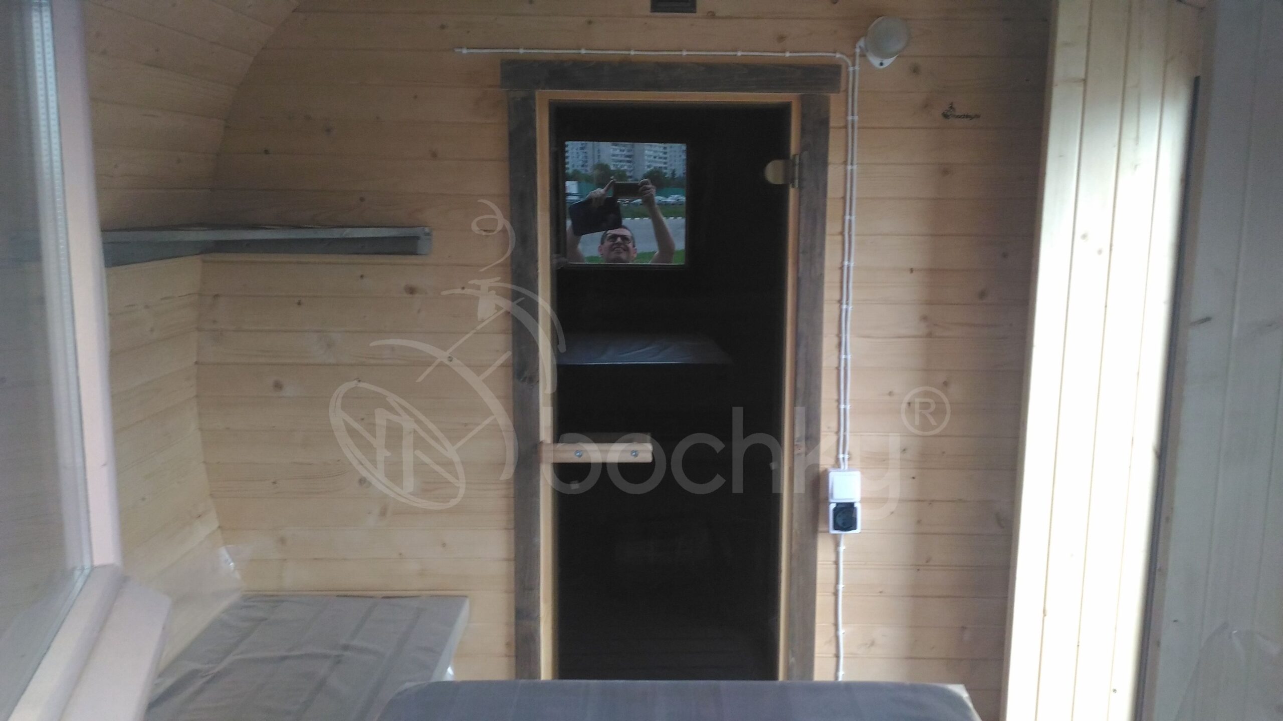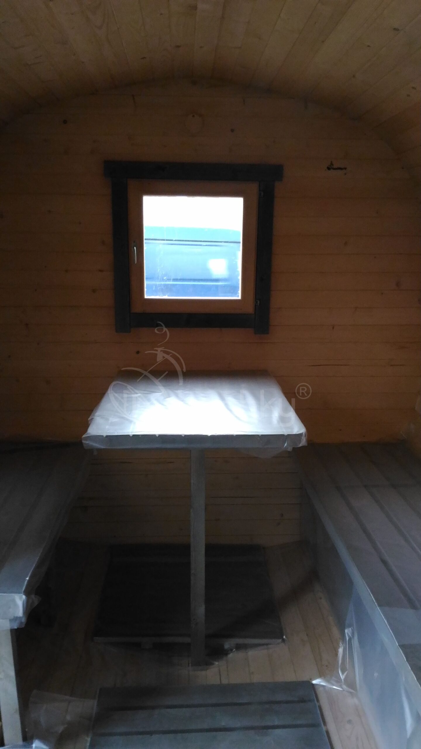 - Foundation for the sauna (wooden legs)