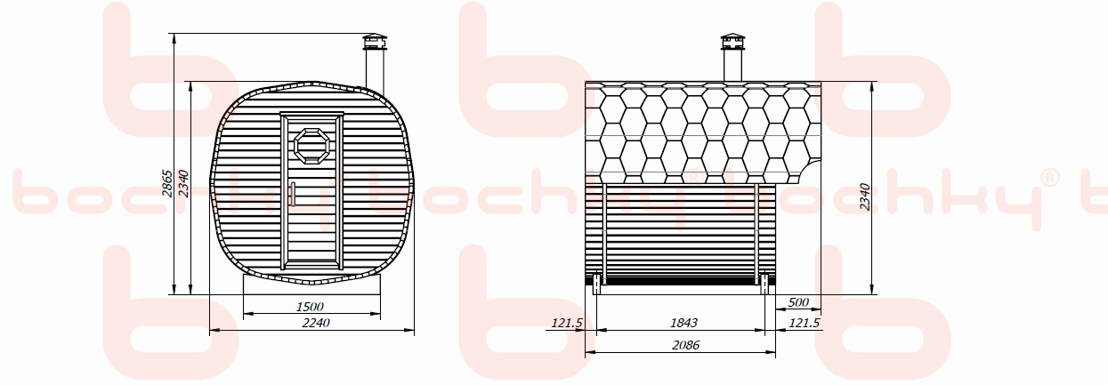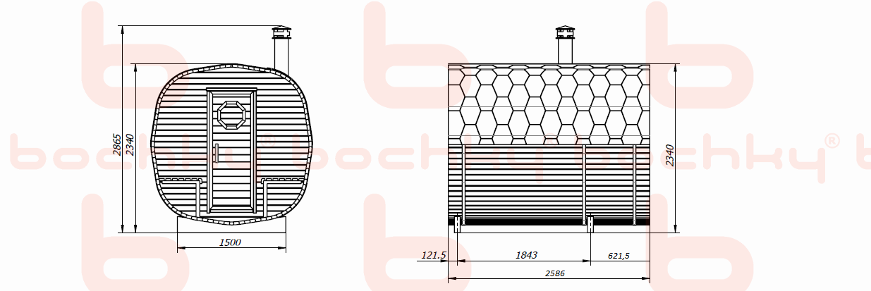 - Spruce or cedar profile (thickness 42mm, humidity 10%)