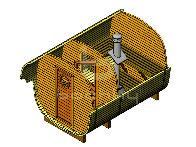 It warms up in 30 minutes even in winter. Octa barrel sauna “Standard” consists of a small dressing room and a steam room. Excellent economic solution for our climate. The sauna is mounted by the crane-manipulator in a ready-made form or assembled on a site in one day.