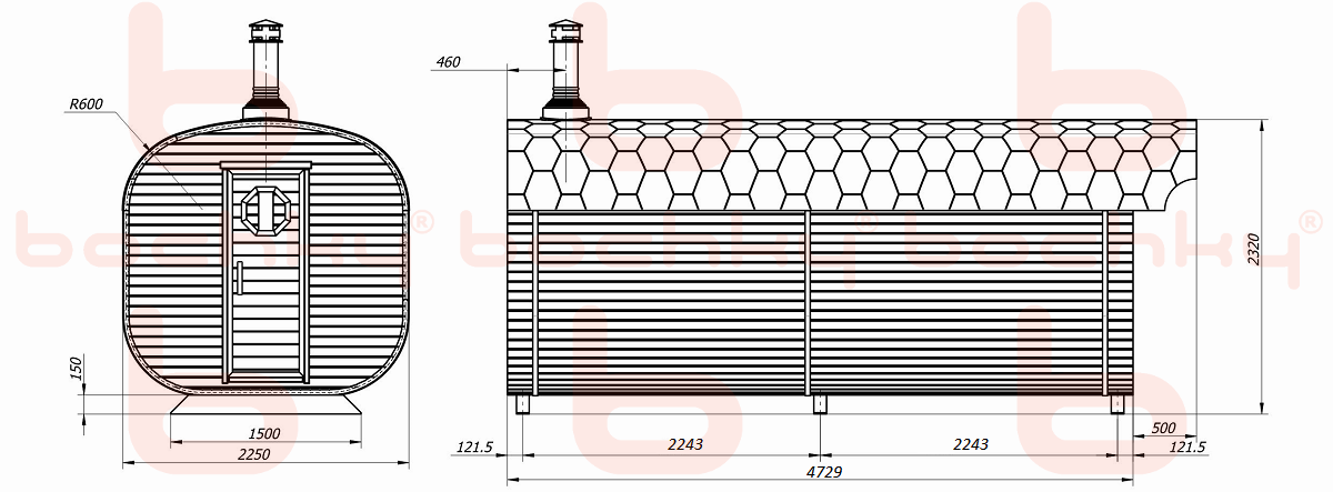 - Two layers external antiseptic treatment (provided that the delivery of the ready-made product or with the assembly on the site)